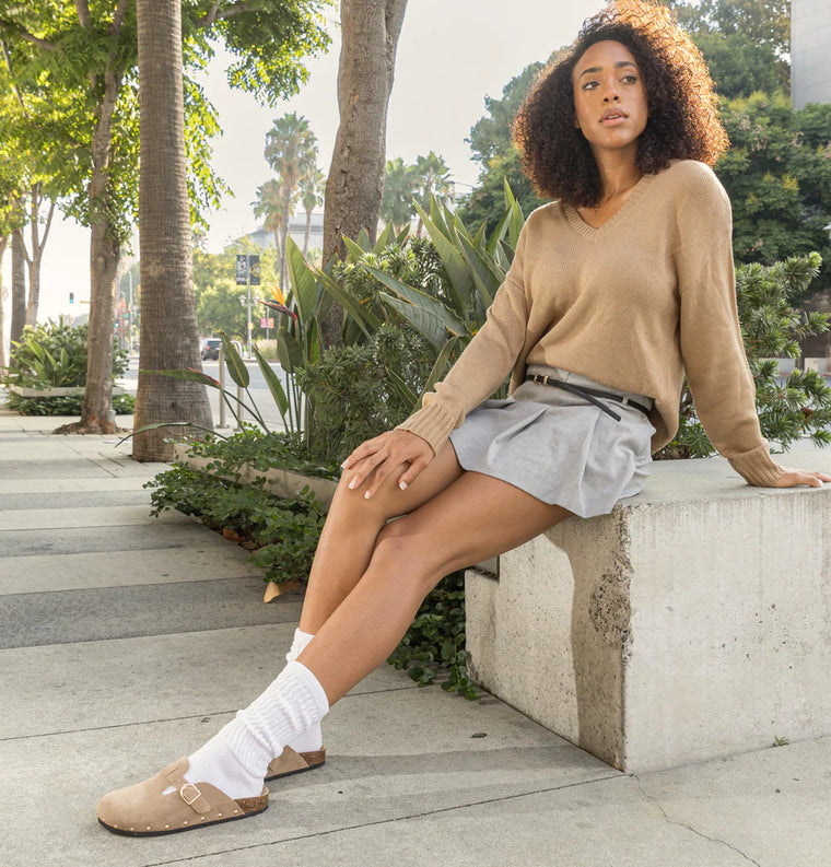 Step into blissful comfort with these luxurious clogs, masterfully crafted from soft cow suede and supportive cork for a stylish, breathable fit that suits your active lifestyle.